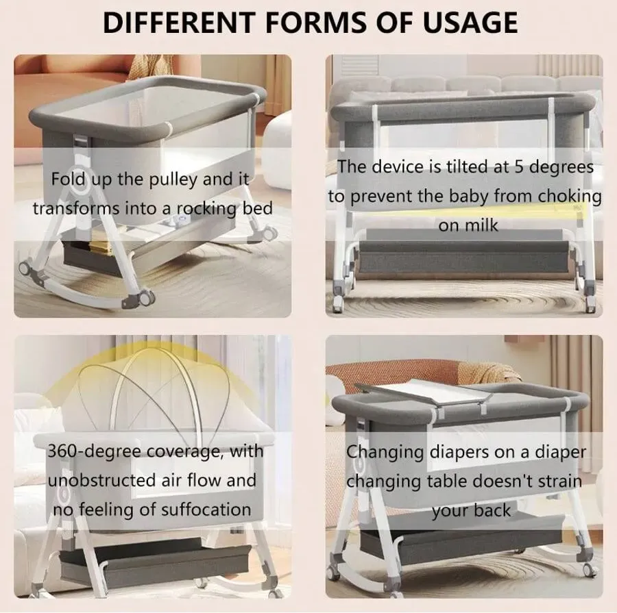 The 3 in 1 baby bassinet plays a role in simplifying daily care routines. By combining multiple functions, it reduces the need for separate equipment. The adjustable height system supports positioning based on different sleeping arrangements. The storage section keeps necessary items within reach reducing repeated movement during care routines.