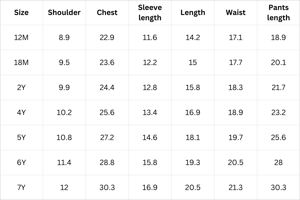 Size Chart (Inches):