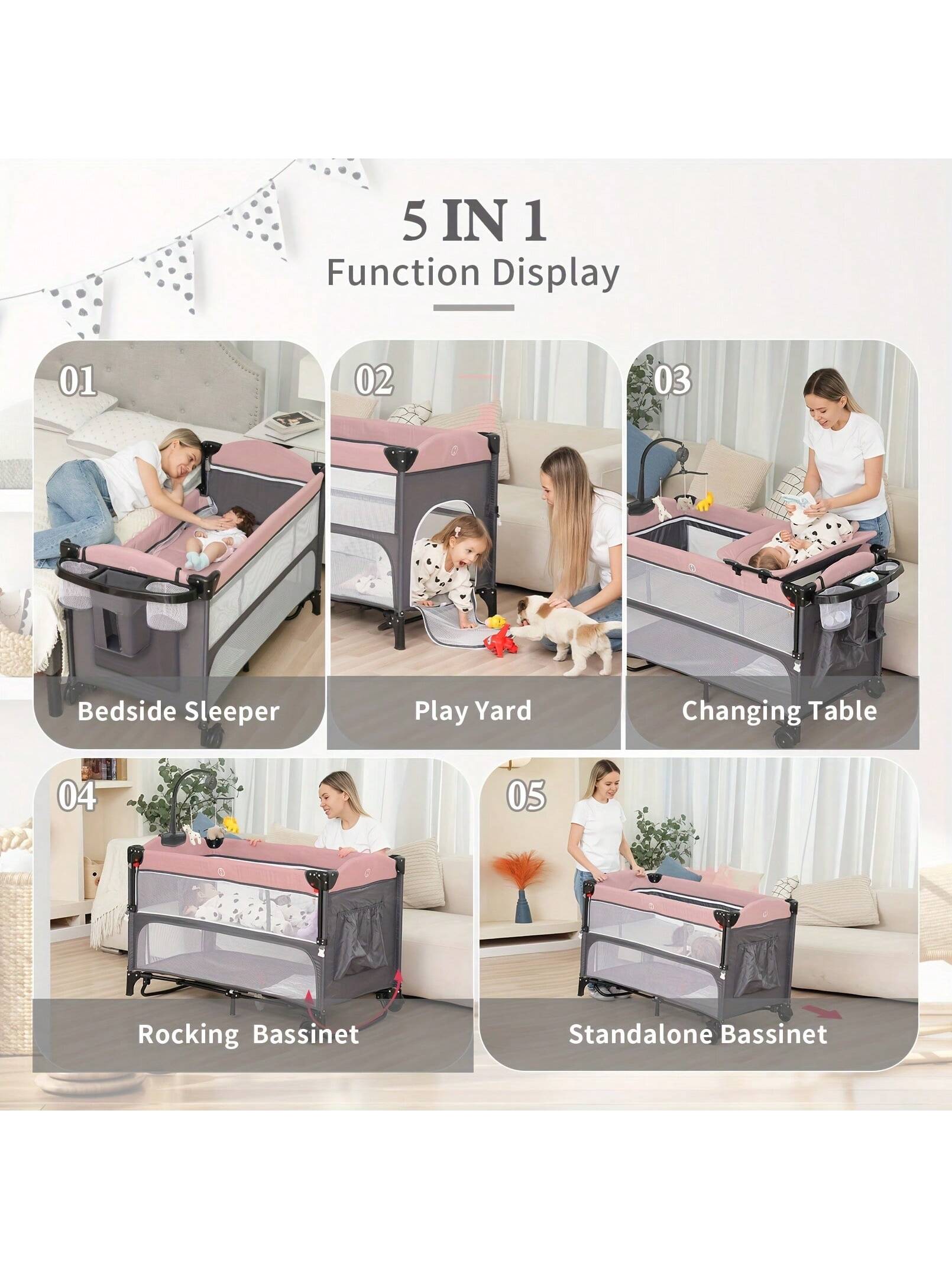 The Baby Playpen Multi Function Set supports transitions from sleeping to activity without disruption. It provides a dedicated area that can be used repeatedly, making it easier to maintain a routine structure.