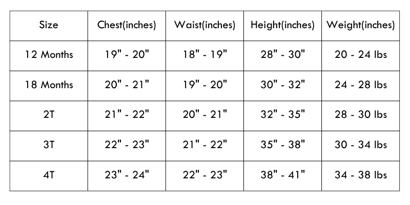 Available Sizes: 12 months, 18 months, 2T, 3T, 4T