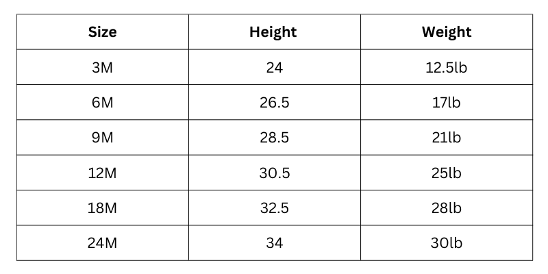 Size Chart (inches):