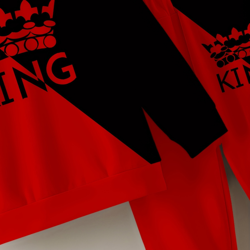 The King Crown Design Hoodie and Pant Set for Boys is a comfortable outfit designed for toddlers. Featuring a striking king crown print in red and black, this set is perfect for any little one who likes to make a bold statement. Made with soft and airy perfect for any little one who likes to make a boldpolyester, it’s ideal for casual wear and outdoor activities during the spring and fall months. Whether your child is playing outdoors or simply chilling at home, this hoodie and pants set offers the perfect combination of comfort, style.