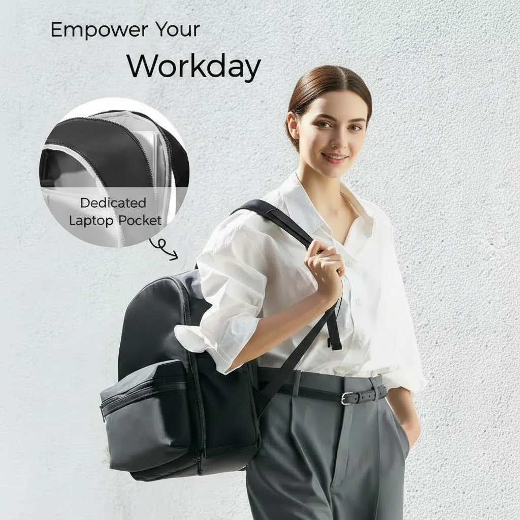 The front zip pocket offers quick-access storage for frequently used items, while interior sections help maintain organization throughout the day. Side pockets accommodate bottles or small accessories, ensuring everything remains within reach.