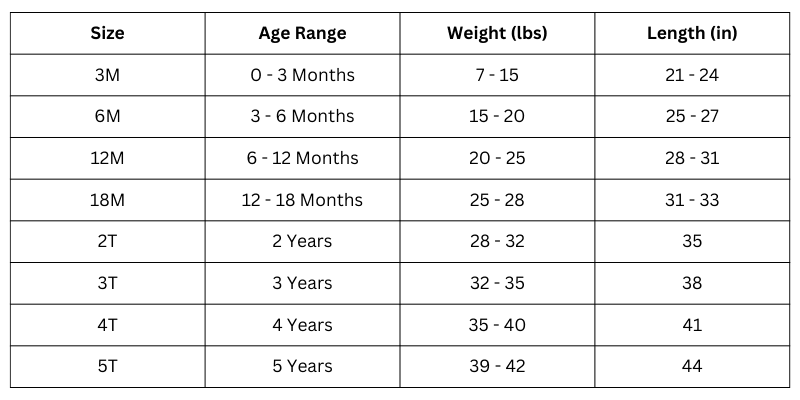 Available Sizes: 3M, 6M, 12M, 18M, 2T, 3T, 4T, 5T
